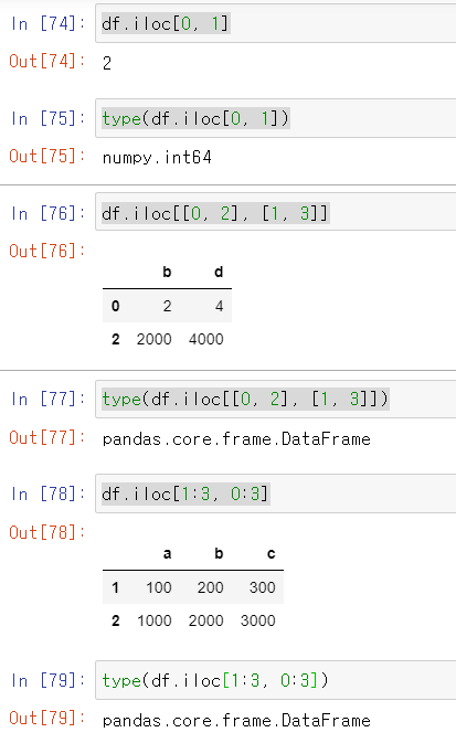 , 형태로 row 와 column을 구분해서 특정 스칼라 요소를 갖고오거나, 특정 행과 열이 겹치는 dataframe형태로 갖고오거나 할 수 있다!!! 컴마를 쓰는것을 확인하자!!
