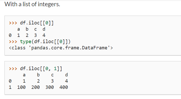 pandas.DataFrame.iloc — pandas 1.2.1 documentation
