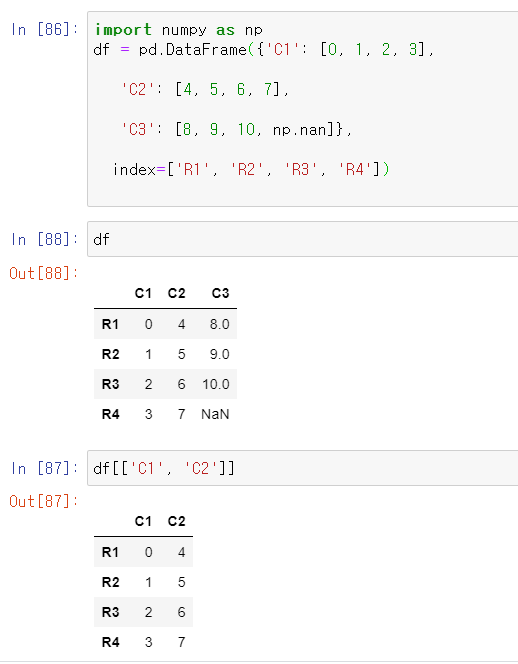 In [29]: df[['C1', 'C2']] Out[29]: C1 C2