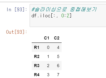 순간적으로 특정 컬럼을 갖고오는 df[['C1','C2']] 를 iloc와 loc를 사용해서 동일결과를 확인해보고 싶었다!!