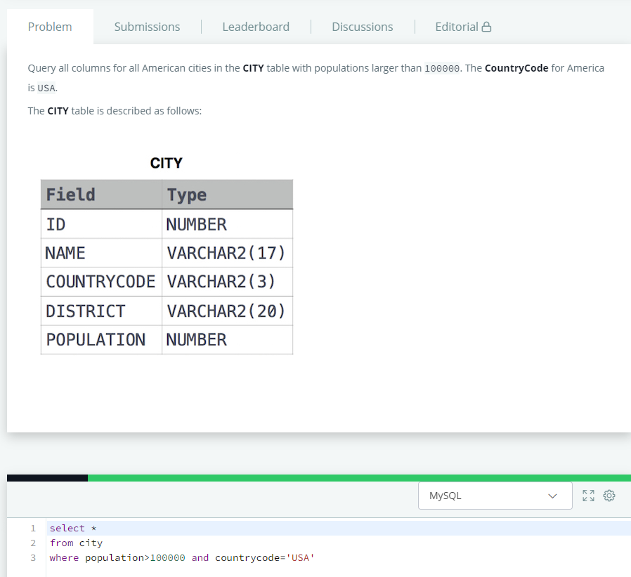 즉, 인구가 10만이상이고 & USA 인 도시만 출력하는것이 핵심!!