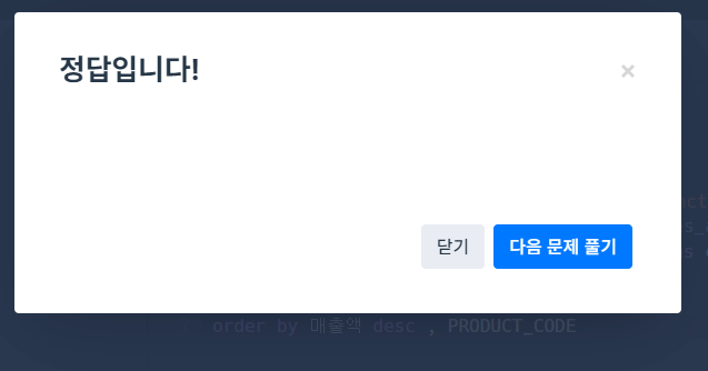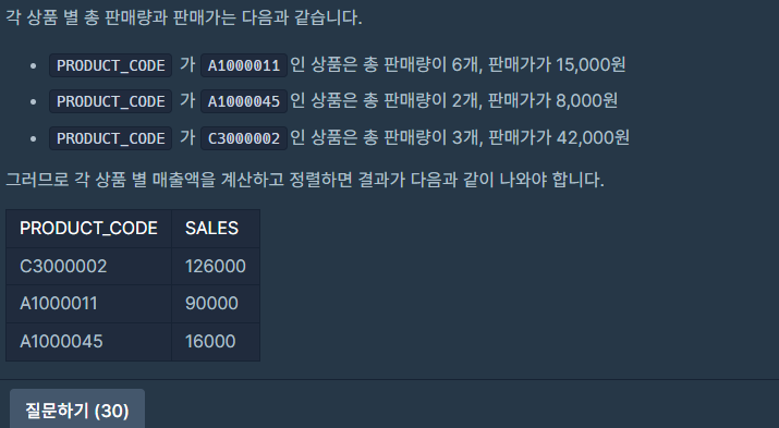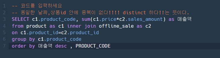 문제 예시에는 product_code로 조인될수 있게 설명이 되어있지만..실제 풀이는 그렇지 않은것 같다.