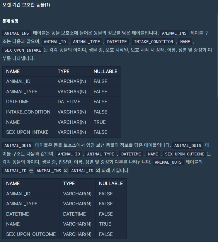 | [프로그래머스고득점kit]코딩테스트 연습코딩테스트 연습JOIN보호소에서 중성화한 동물(level 4) (0) | 2023.03.30 |