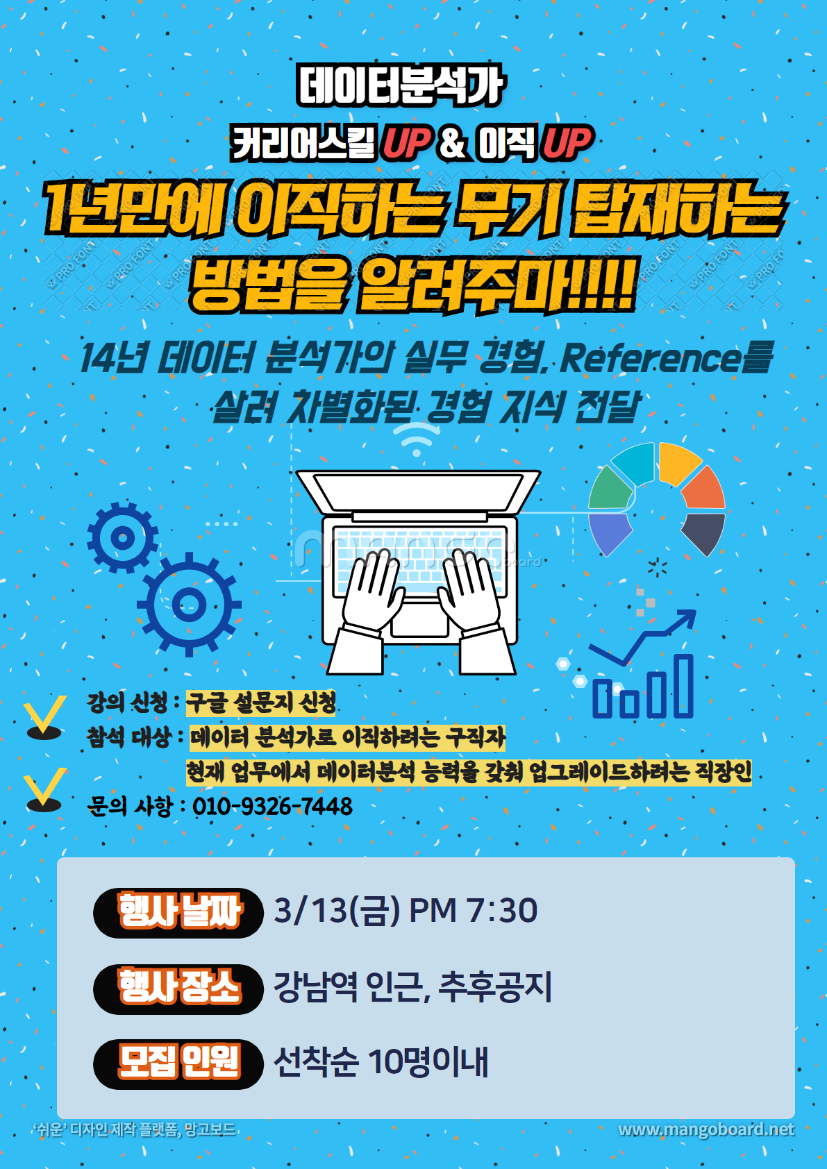 현재 시간으로 "데이터분석가 커리어 SKILL UP& 이직 UP "세미나는 총 10명으로 마감되었습니다.